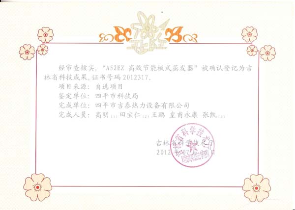 • SIPING JITAI HEAT EXCHANGE EQUIPMENT CO.,LTD. 四平市吉泰熱力設(shè)備有限公司